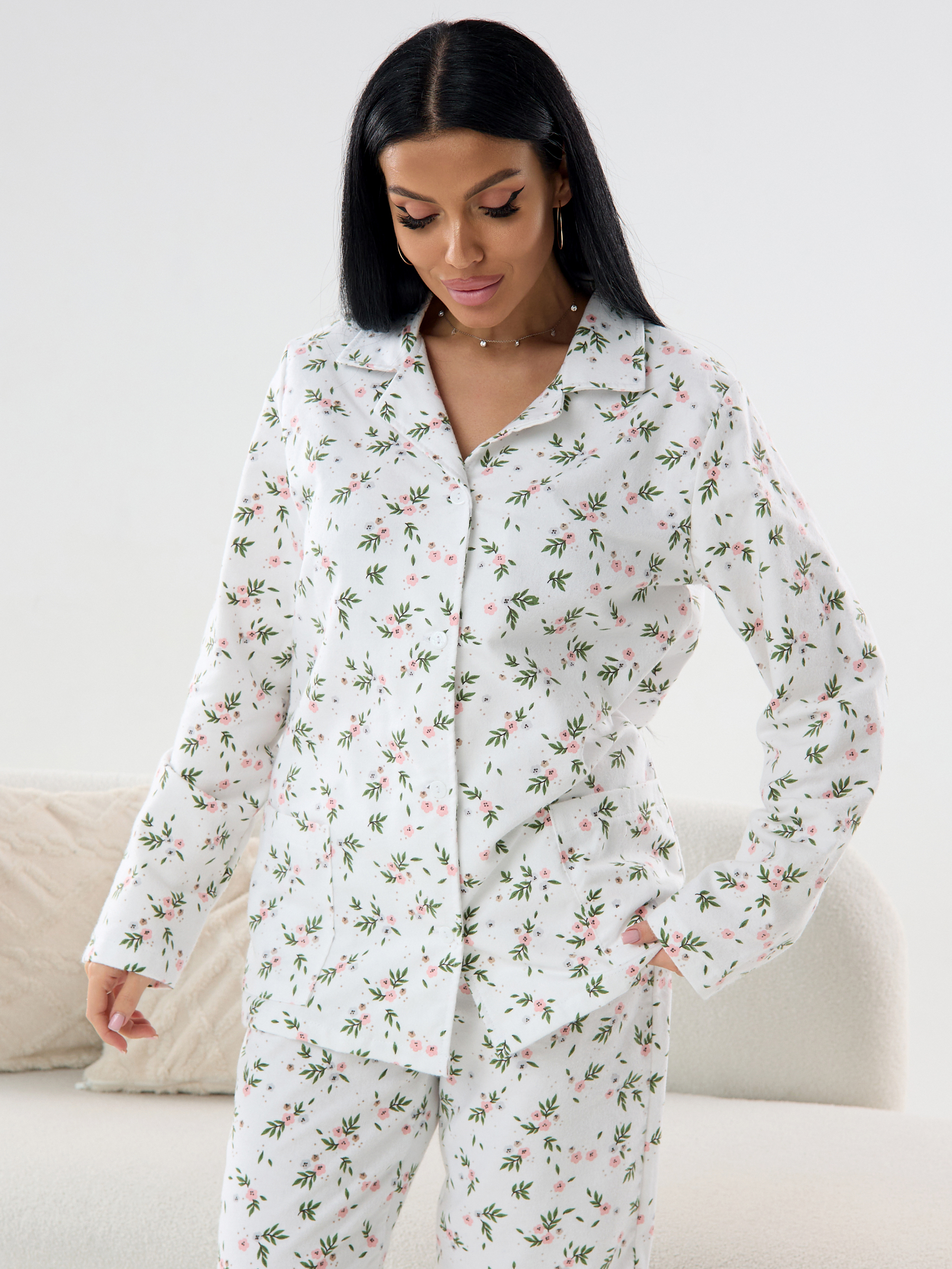 Женская фланелевая пижама с брюками. Этот прекрасный набор из приятного на ощупь хлопка станет идеальным спутником в холодные дни. С начесом и длинным рукавом, он согреет вас и обеспечит невероятный комфорт на протяжении всей ночи.